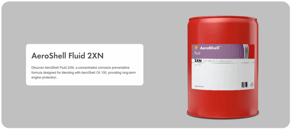 AeroShell Fluid 2XN is primarily used as an ingredient of AeroShell Fluid 2F (1 part ASF 2XN with 3 parts ASO 100), but can be used undiluted to provide additional protection for piston engines after run-out on AeroShell Fluid 2F, by spraying exhaust ports, rocker arms, accessories.