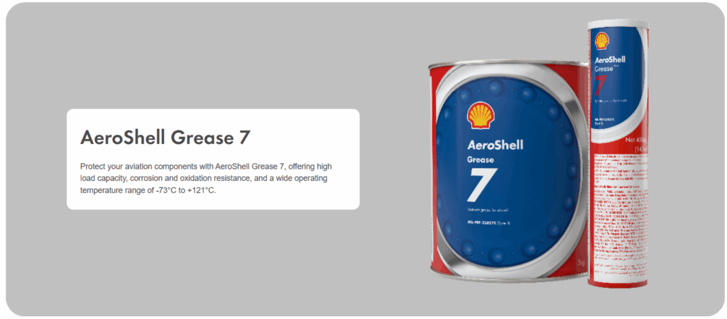 AeroShell Grease 7 satisfies nearly all the airframe grease requirements of turbine engine aircraft and those of piston engine aircraft provided that seal incompatibility does not occur. Most civil aircraft manufacturers approve AeroShell Grease 7 as a general-purpose synthetic grease either by brand name or by specification.