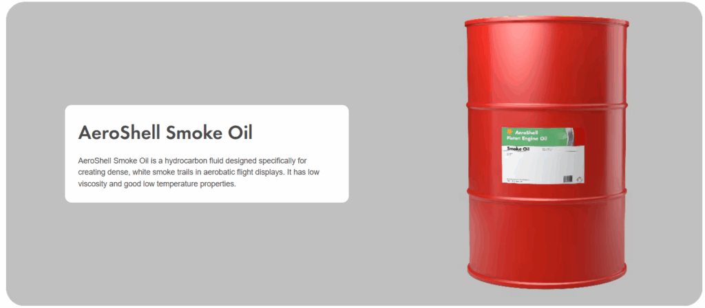 AeroShell Smoke Oil is used in both piston engine and jet engine powered aviation aerobatic flight displays.